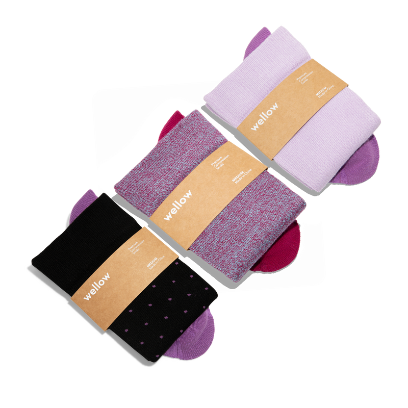 Wellow is the only sock at this compression level that gently wraps around feet, ankles, and legs to provide enough support to stimulate blood flow but be comfortable enough to wear all day.