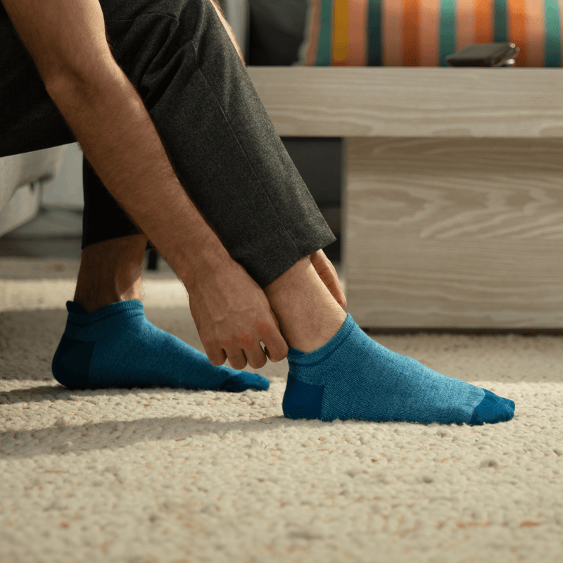 Featuring a unique blister tab, these ankle socks offer easy on and off for effortless wear and removal. Enjoy a seamless, comfortable experience every time.