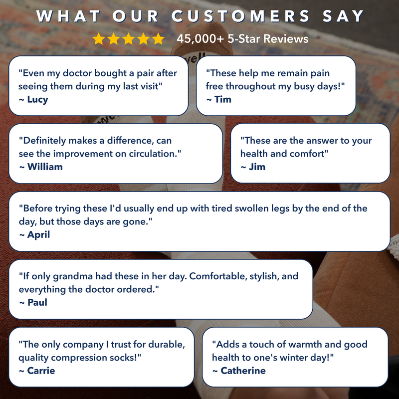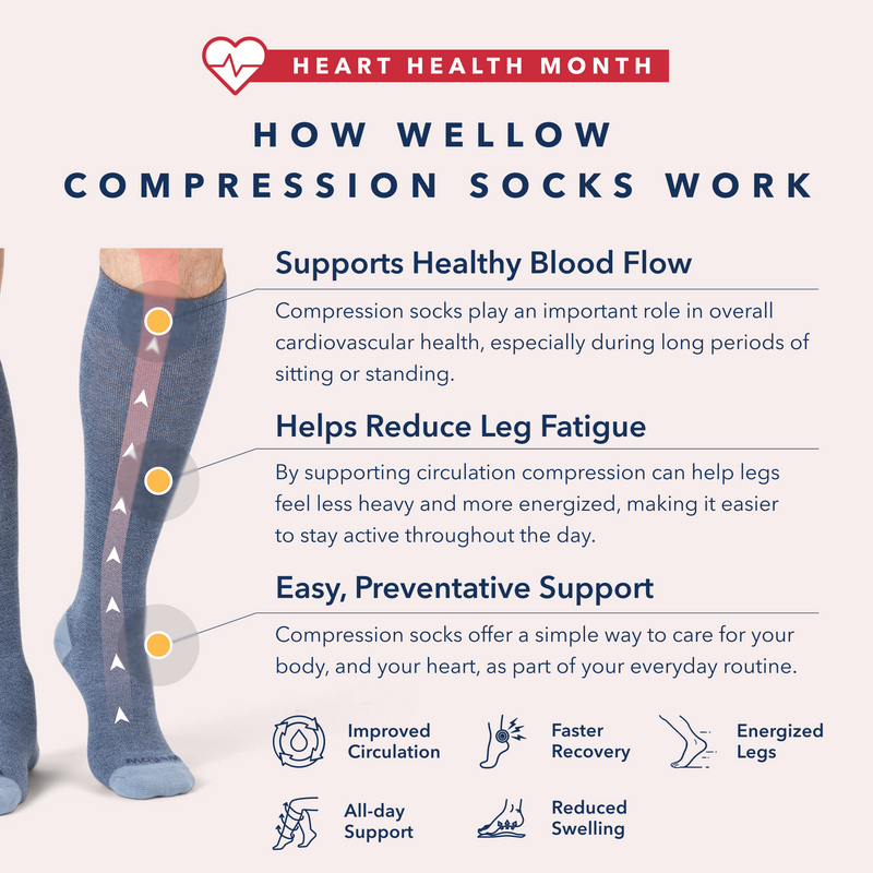 Wellow is the only sock at this compression level that gently wraps around feet, ankles, and legs to provide enough support to stimulate blood flow but be comfortable enough to wear all day.